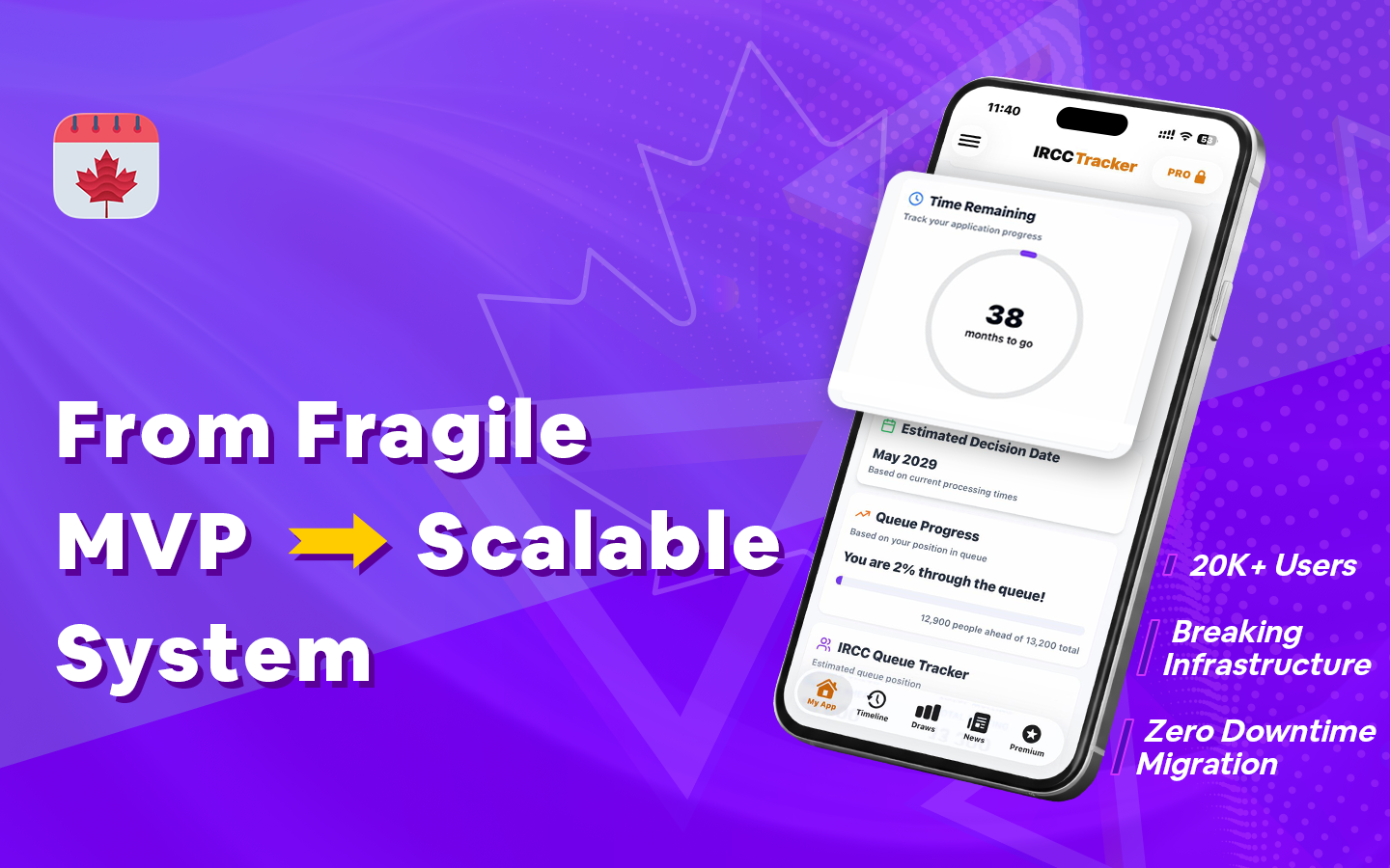 The IRCC Tracker app gives Canadian immigration applicants deeper insights into their application status compared to the official government portal. Even though the app had strong early traction and everything was running live, behind the scenes, the database was struggling.